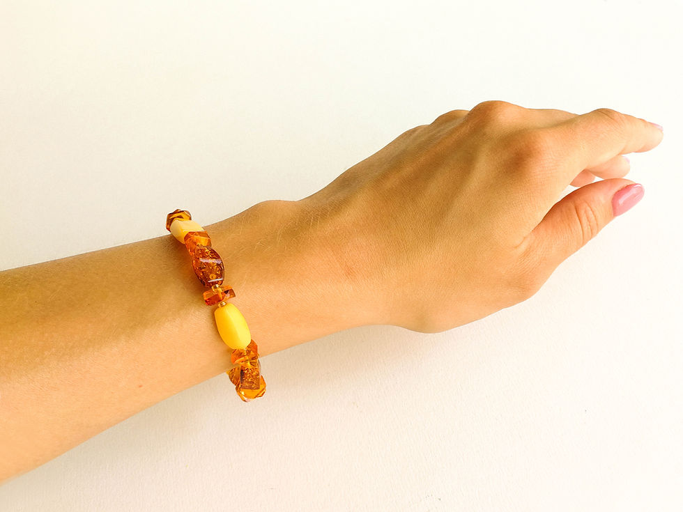 Cognac and matt yellow colors rectangle amber beads elastic everyday bracelet