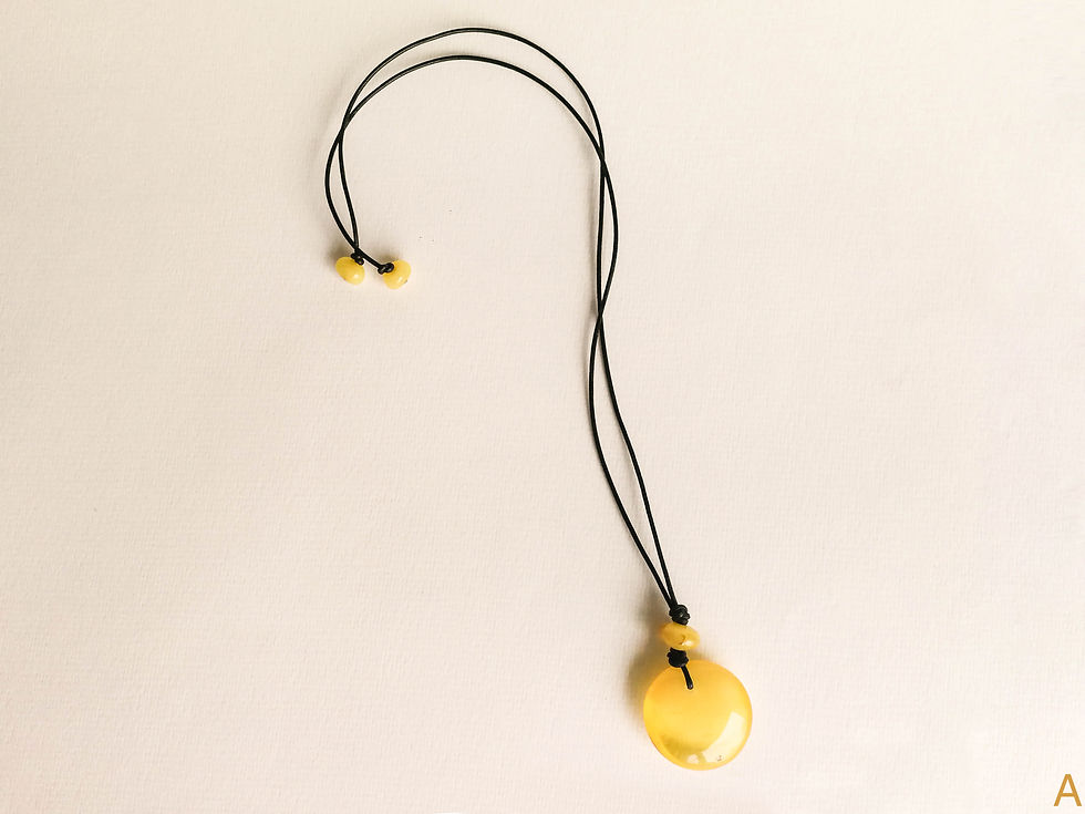 Matt yellow color natural amber pendant on leather strand with natural hole